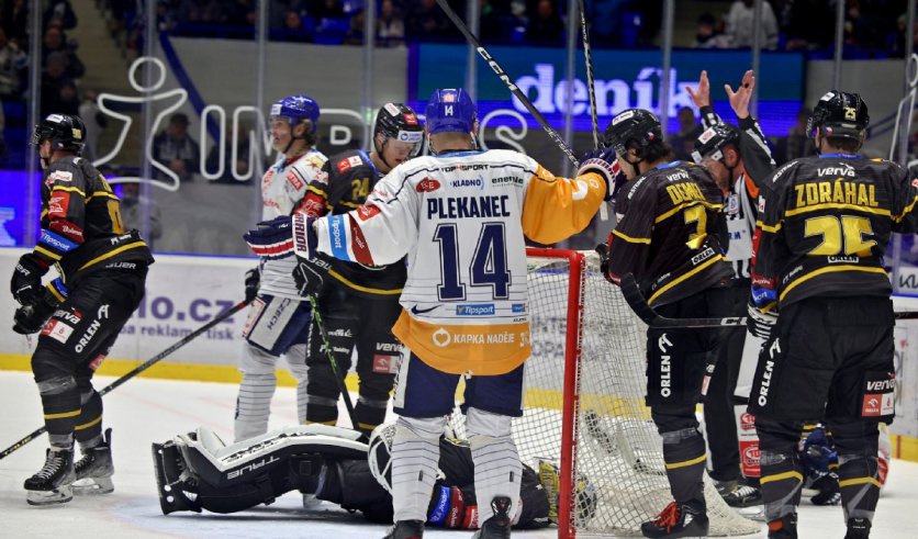 Třetí část dlouho větší možnosti nepřinášela, Litvínov ale postupně stupňoval svůj tlak. Ten vyvrcholil při přesilové hře, kdy dostal hodně prostoru na levém kruhu Giorgio Estephan, šikovně si připravil střelu a přesně vypálil – 3:1. Jenže Rytíři žádné drama nepřipustili. Klepišova formace si vytvořila tlak, Miroslav Indrák dojel vyražený puk po Ticháčkově nahození a se štěstím ho zametl za nataženého Tomka – 4:1. Ani Verva ovšem nesložila zbraně a z dobrého důrazu znovu snížila. Na dorážku si dobře sjel Andrej Kudrna – 4:2. Litvínov poté odvolal brankáře, ale byl potrestaný. Tomáš Plekanec nahodil ze středního pásma a završil stovku vstřelených soutěžních gólů za Kladno – 5:2.