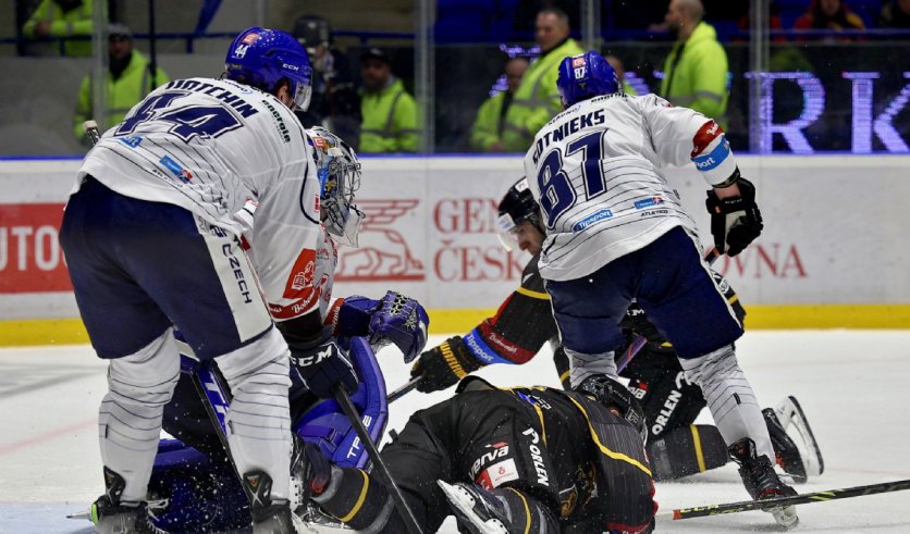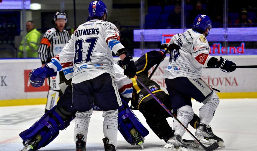Branky a nahrávky: 16. Zikmund (Klepiš), 30. Michnáč (Bláha, Ticháček), 32. Cibulskis (Bláha, Kubík), 57. Indrák (Ticháček), 60. Plekanec – 54. Estephan (Zdráhal, Jaks), 59. Kudrna. Vyloučení: 3:2. Využití: 1:1. V oslabení: 0:0. Nejlepší hráči utkání: Ondřej Bláha – Kristaps Zile.