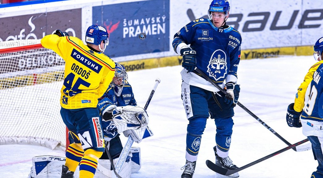 Branky a nahrávky: 26. Přikryl (Cibulka, Kubíček), 39. Olesen (Kubík, Kubíček), 44. Olesen (Harris, Kubík) – 13. Procházka (Straka, Hults), 22. Bláha (Strnad, Jágr), 45. Ticháček (Smoleňák, Jarůšek), 54. Strnad (Bláha, Jágr), 58. Ticháček (Tralmaks), 60. Smoleňák (Mendel). Vyloučení: 3:3. Využití: 0:0. V oslabení: 0:0. Nejlepší hráči: Nick Olesen – Jakub Strnad.